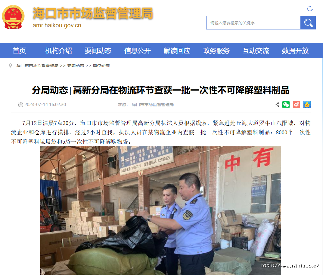 自海南省2022年2月發布《禁止一次性不可降解塑料制品的規定》起,海南省加速嚴厲打擊生產、銷售、使用一次性不可降解塑料,但仍有部分企業及個人違反相關規定,不顧政策要求使用其不可降解塑料制品。截止目前??谑惺袌霰O督管理局已查獲多起使用、運輸儲存不可降解塑料制品的情況,并已將其進行嚴肅處理。