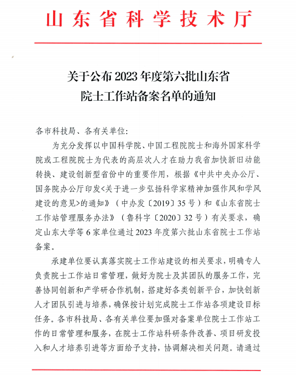 9月4日,山東省科技廳公布了2023年度第六批山東省院士工作站備案名單,山東恒聯(lián)新材料股份有限公司院士工作站名列其中,有幸成為今年以來濰坊市首個成功備案的省級院士工作站。