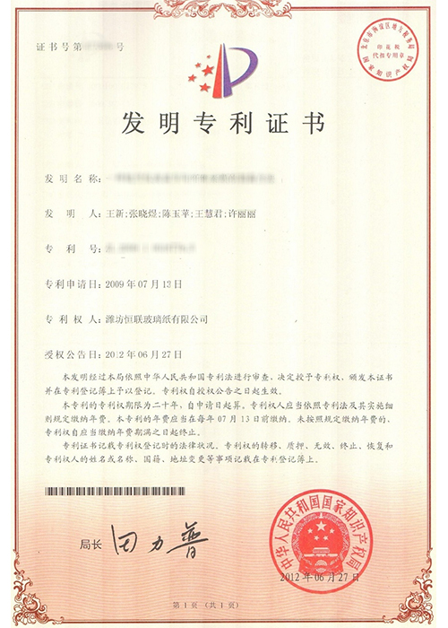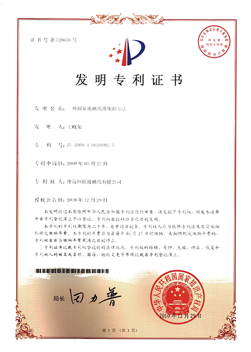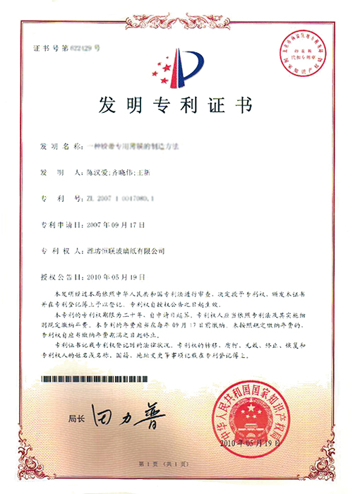 新型溶劑型涂布玻璃紙——被列入“2008年山東省重點技術創新項目計劃”(魯經貿技字[2008]157號),已通過山東省級科技成果鑒定。