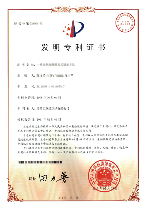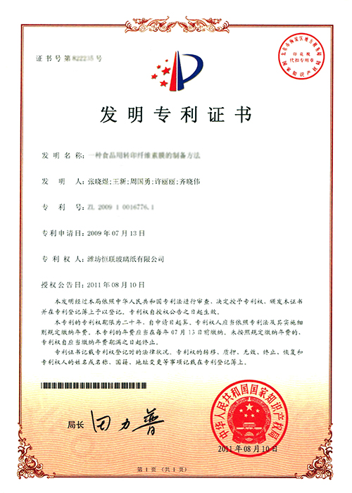 低溫熱封纖維素膜——被列入“2009年山東省重點技術創新項目計劃”(魯經貿技函字[2009]41號),已通過山東省級科技成果鑒定。