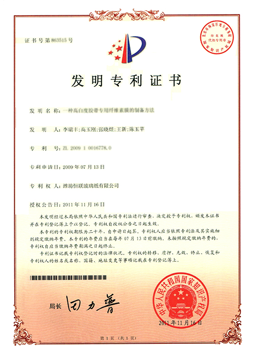 高白度膠帶專用纖維素膜——被列入“2009年山東省第一批技術創新項目計劃”(魯經貿技字[2009]330號),已通過山東省級科技成果鑒定。