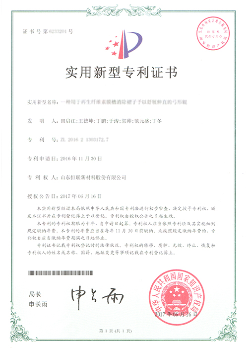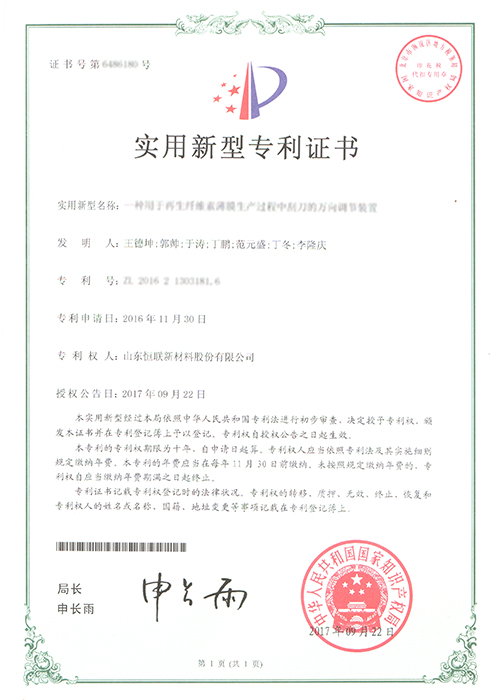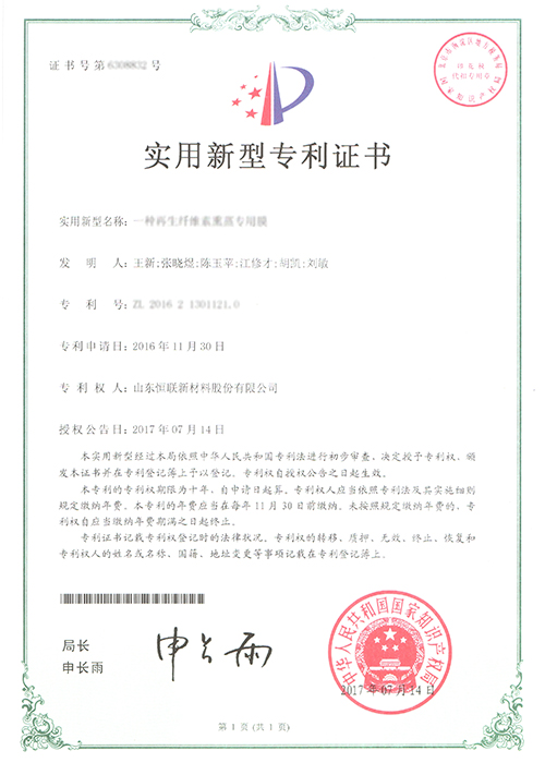 直線打孔再生纖維素膜——被列入“2012年山東省第一批技術創新項目計劃”(魯經信技字[2012]109號),已通過山東省級科技成果鑒定。
