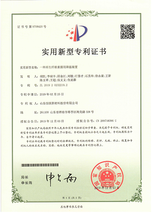 醫藥專用再生纖維素膜——被列入“2010年山東省第四批技術創新項目計劃”(魯經貿技字[2010]592號),已通過山東省級科技成果鑒定。